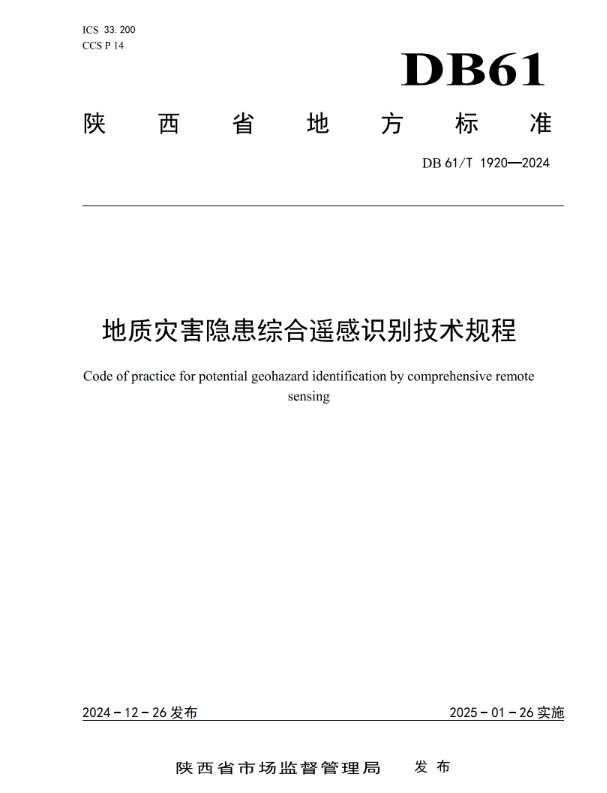 该标准系统集成了星载雷达、机载高分辨率光学成像及激光点云等多源遥感技术,在技术创新性与工程实用性层面实现了统筹兼顾。作为陕西省首个地质灾害隐患识别领域技术标准,该标准的颁布实施填补了省内该领域标准化建设空白,为地质灾害风险防控体系构建提供了标准规范支撑。