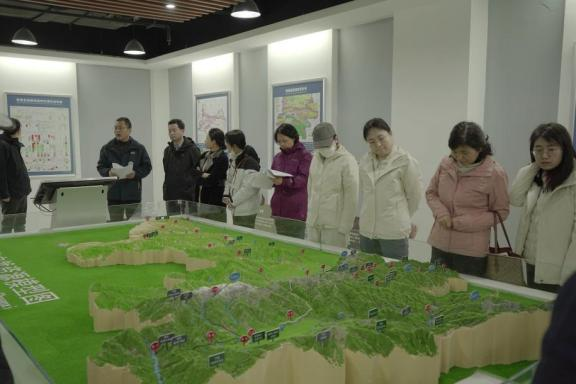 实践教学第一站是陕西省基础地质野外示范基地,参加培训人员先后参观了综合厅、岩矿标本、地质灾害、自然资源等展厅,集体观看了《地球的演化史》科普视频,聆听了《陕西地质》专题讲座,通过三维动画还原地貌模型、岩石标本展示矿石特征、讲解地学知识等形式,深入学习了全省基础地质、矿产地质、灾害地质、环境地质等相关知识。大家尽情徜徉在地学世界中,通过与基地技术人员深入交流及专家现场答疑解惑,进一步丰富了地质理论知识,强化了理论指导实践,实践提升理论应用的能力。