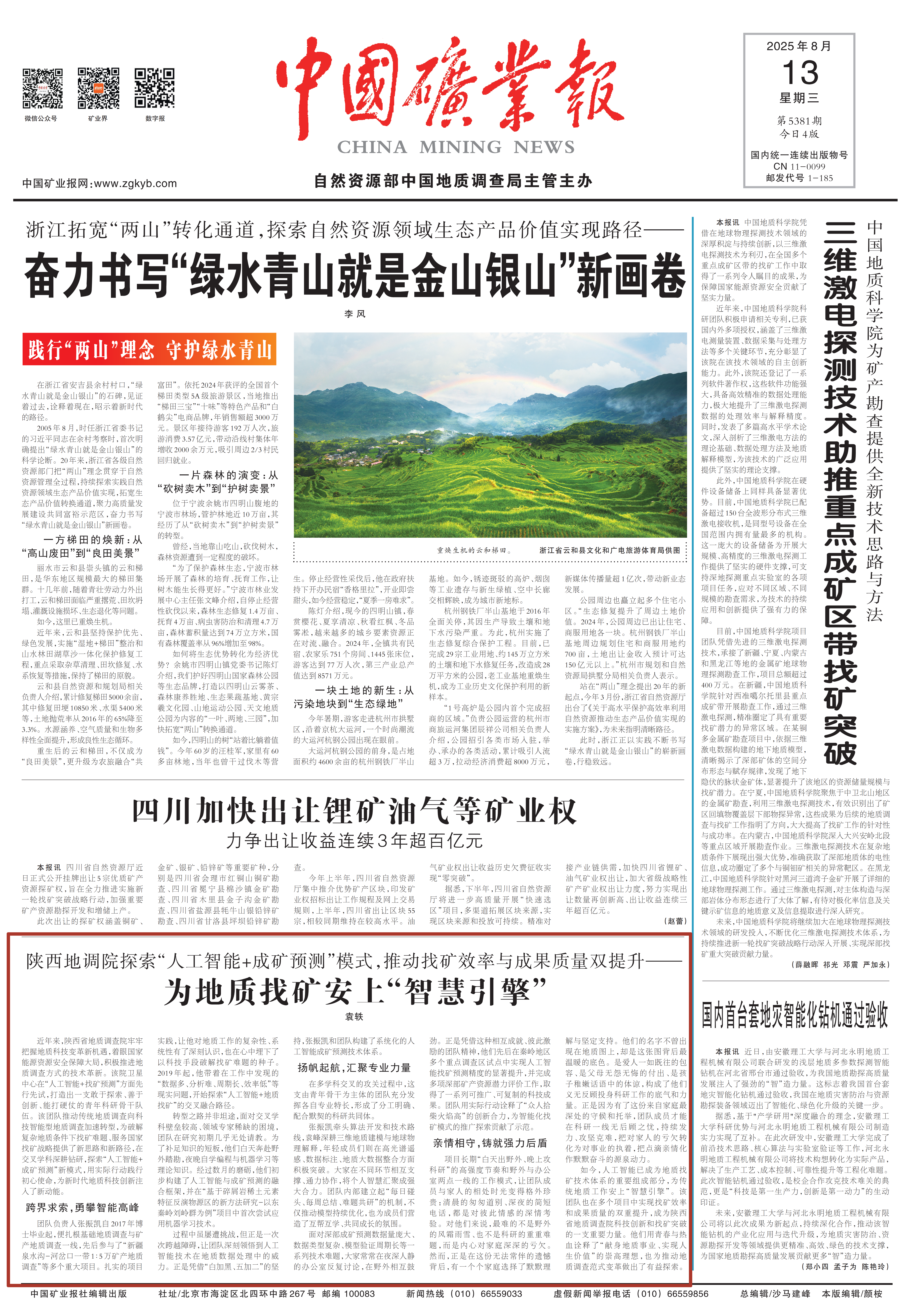 中国矿业报:陕西地调院探索“人工智能+成矿预测”模式,推动找矿效率与成果质量双提升——为地质找矿安上“智慧引擎”