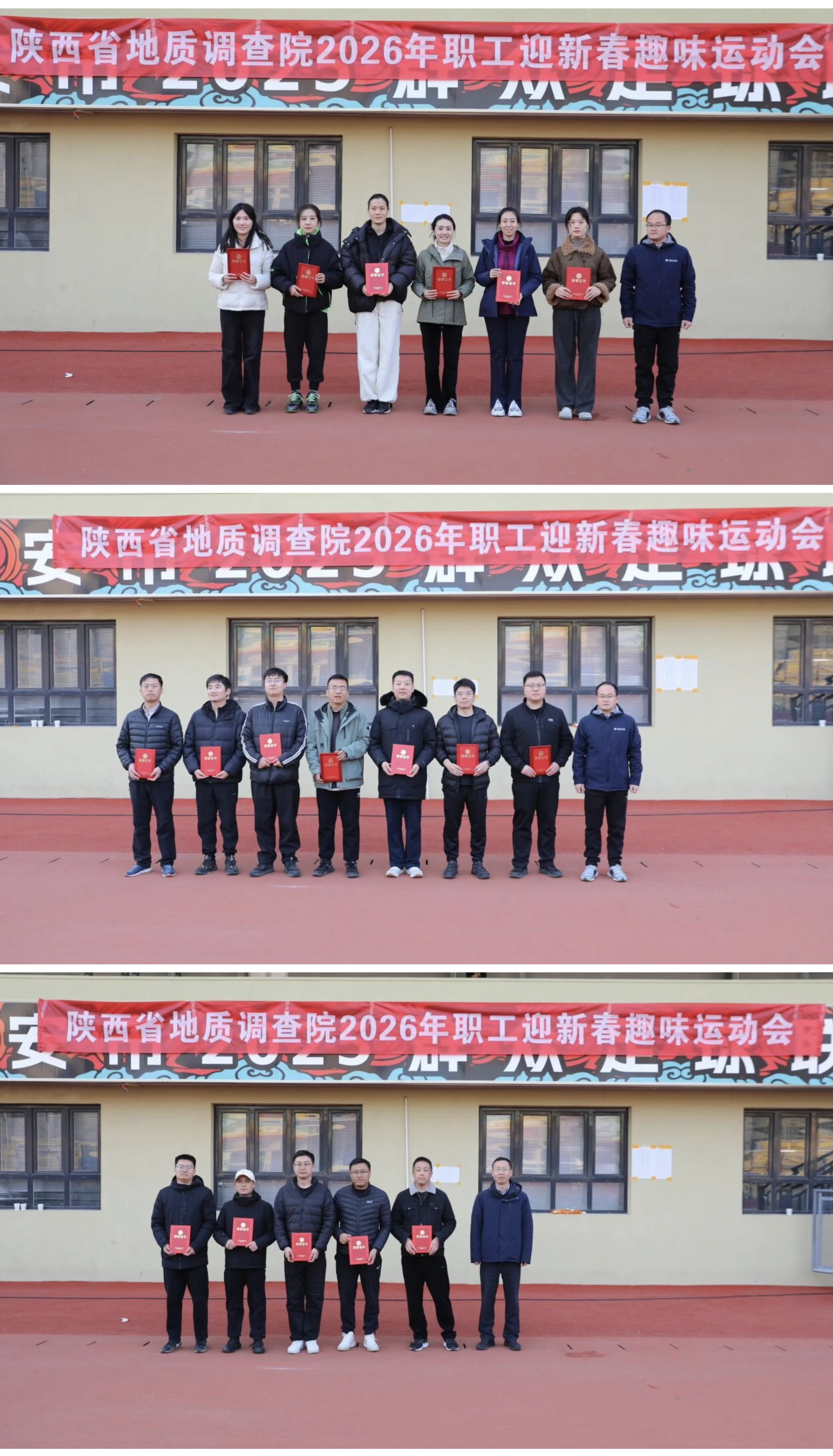 1月16日,省地质调查院在西安市体育场举办2026年职工迎新春趣味运动会。省地质调查院党委书记黄建军出席开幕式并致辞,院长侯登峰,副院长张晓团、李学斌出席活动,全院近600名干部职工组成9支代表队踊跃参赛。