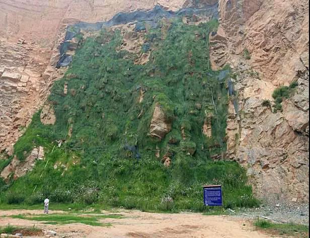 这种技术克服了缺水缺土地区的自然条件限制,既优化了矿区的生态环境,又可以为岩质坡面建立起自然生态循环系统。