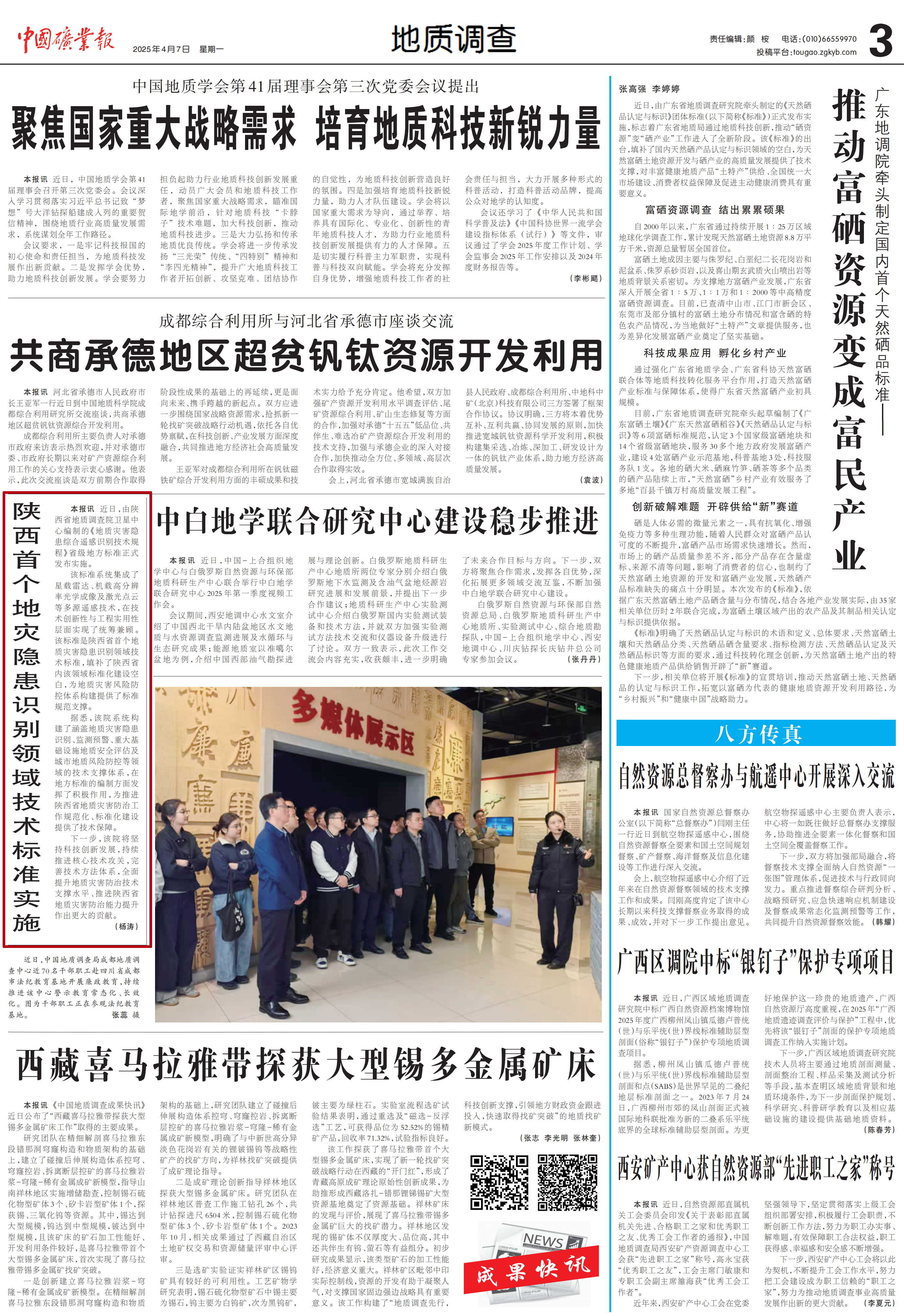 据悉,该院系统构建了涵盖地质灾害隐患识别、监测预警、重大基础设施地质安全评估及城市地质风险防控等领域的技术支撑体系,在地方标准的编制方面发挥了积极作用,为推进陕西省地质灾害防治工作规范化、标准化建设提供了技术保障。